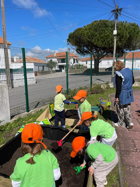 Os morangueiros também estão a gostar muito de estar no nosso JI e vão dando morangos !